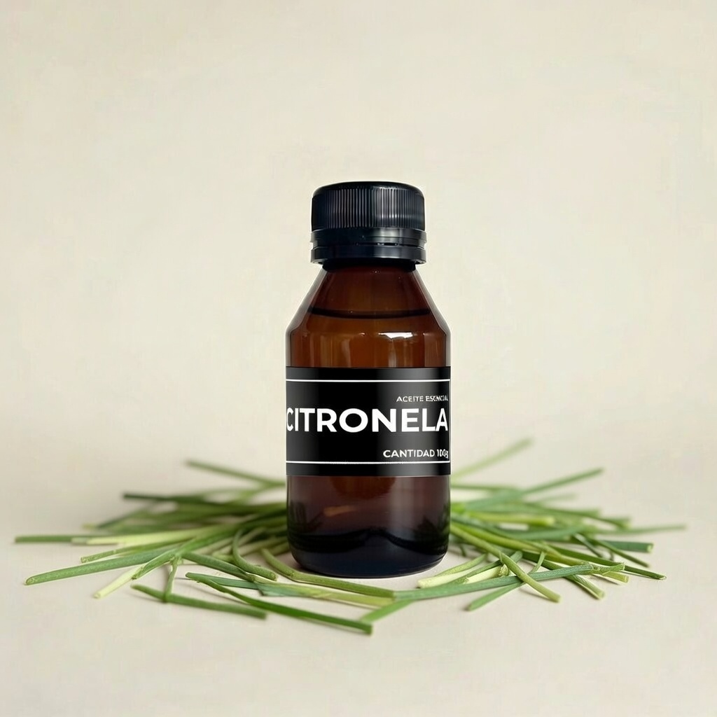 Aceite esencial 100% natural obtenido de las hojas y tallos de citronela (Cymbopogon nardus o winterianus). Perfil aromático fresco, cítrico, herbal y ligeramente lemongrass, con notas verdes y limpias que aportan frescura y carácter repelente natural.